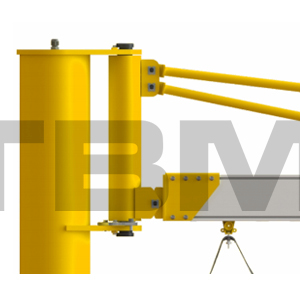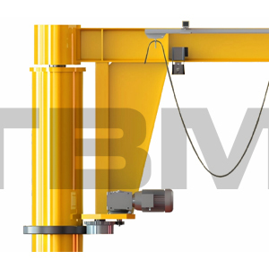 | แกนแกว่งของเครนแขนหมุน 360° ตั้งอยู่บนท่อกลมของเครนคานยื่นโดยตรง โดยมีศูนย์กลางอยู่ที่เสา กำลังจ่ายผ่านวงแหวนสะสม 360° ทำให้สามารถหมุนได้ 360 องศาไม่จำกัด นอกจากนี้ยังสามารถใช้ขีดจำกัดการแกว่งภายนอกเพื่อปรับมุมการแกว่งของเครนแขนหมุนได้ |
